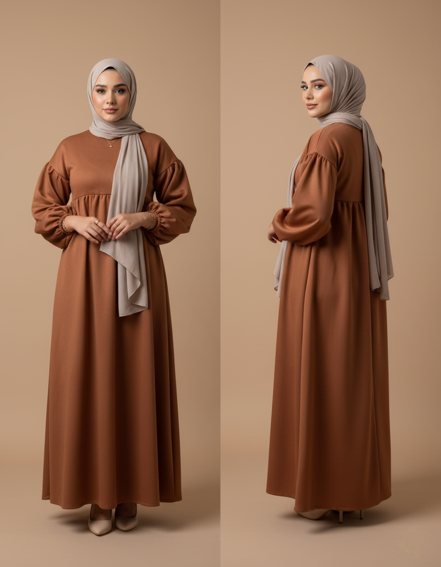 فستان أنيق وواسع بتصميم محتشم يجمع بين البساطة والفخامة، مصنوع من قماش شمواه ناعم ومريح بملمس مخملي مميز. يتميز بقصة فضفاضة وأكمام واسعة تمنحك راحة وأناقة طوال اليوم. يأتي بالألوان الكشمير، النحاسى و البنى ليضفي لمسة دفء وجمال على الإطلالة
